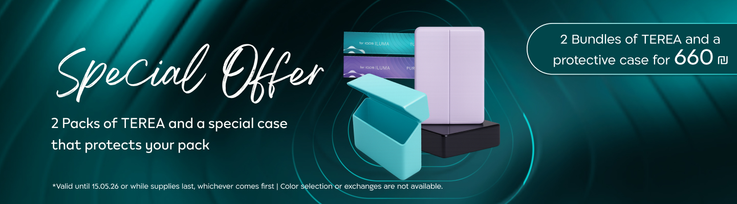 When you buy TEREA online, the price of a single carton is 34 NIS, whilst a 10-pack TEREA carton will cost 330 NIS.