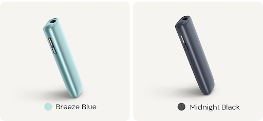 IQOS ILUMA i ONE זמין ב-2 צבעים מרהיבים המתאימים למגוון סגנונות והעדפות אישיות. הצבעים הם: Breeze Blue ו-Midnight Black (משמאל לימין).